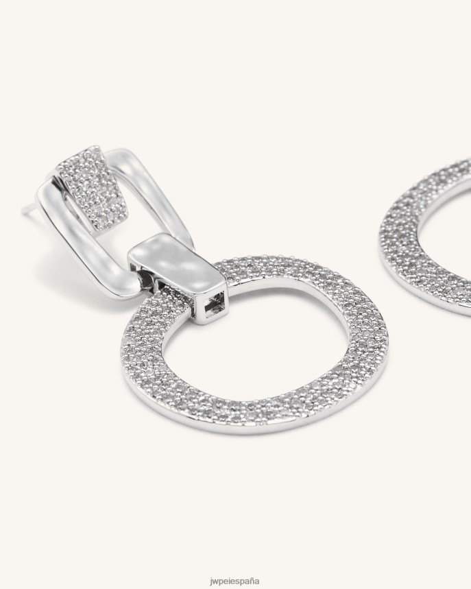 Jw Pei Bolsos – JW PEI Pendientes geométricos abiertos redondos Circón de oro blanco de 18ct chapado y blanco L848F8392 pendientes