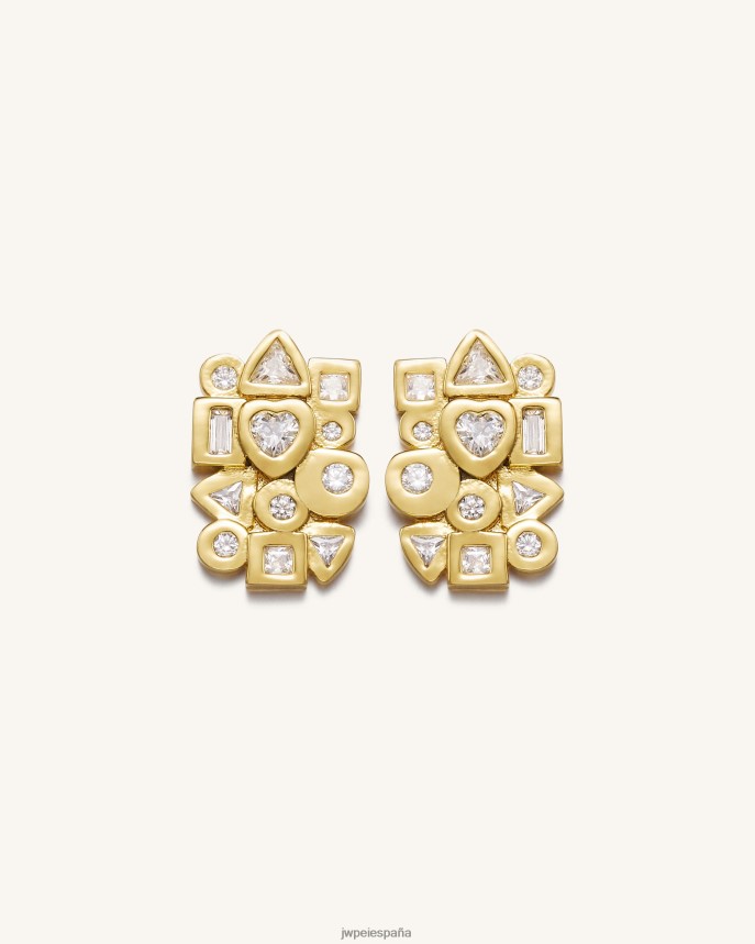 Jw Pei España – JW PEI Pendientes de combinación geométrica 18ct chapado en oro y circón blanco L848F8397 pendientes